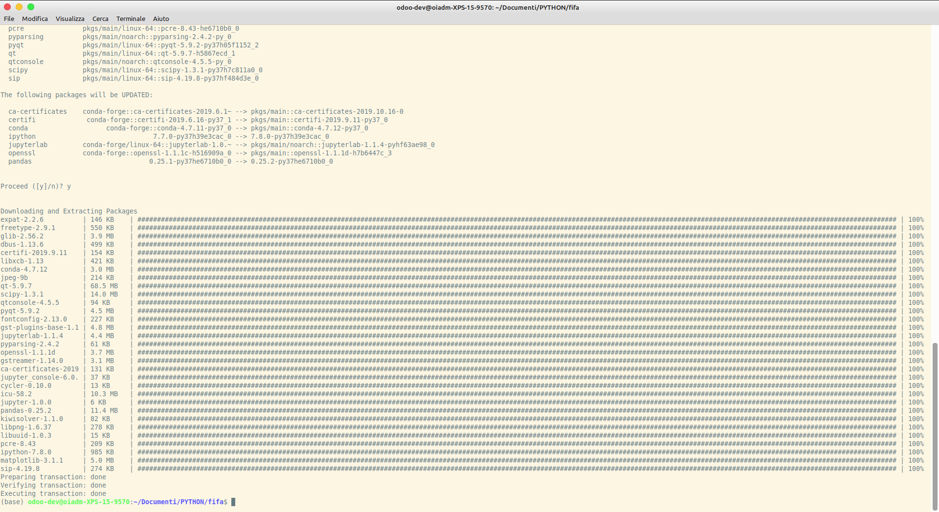 conda install numpy scipy matplotlib ipython jupyter jupyterlab pandas