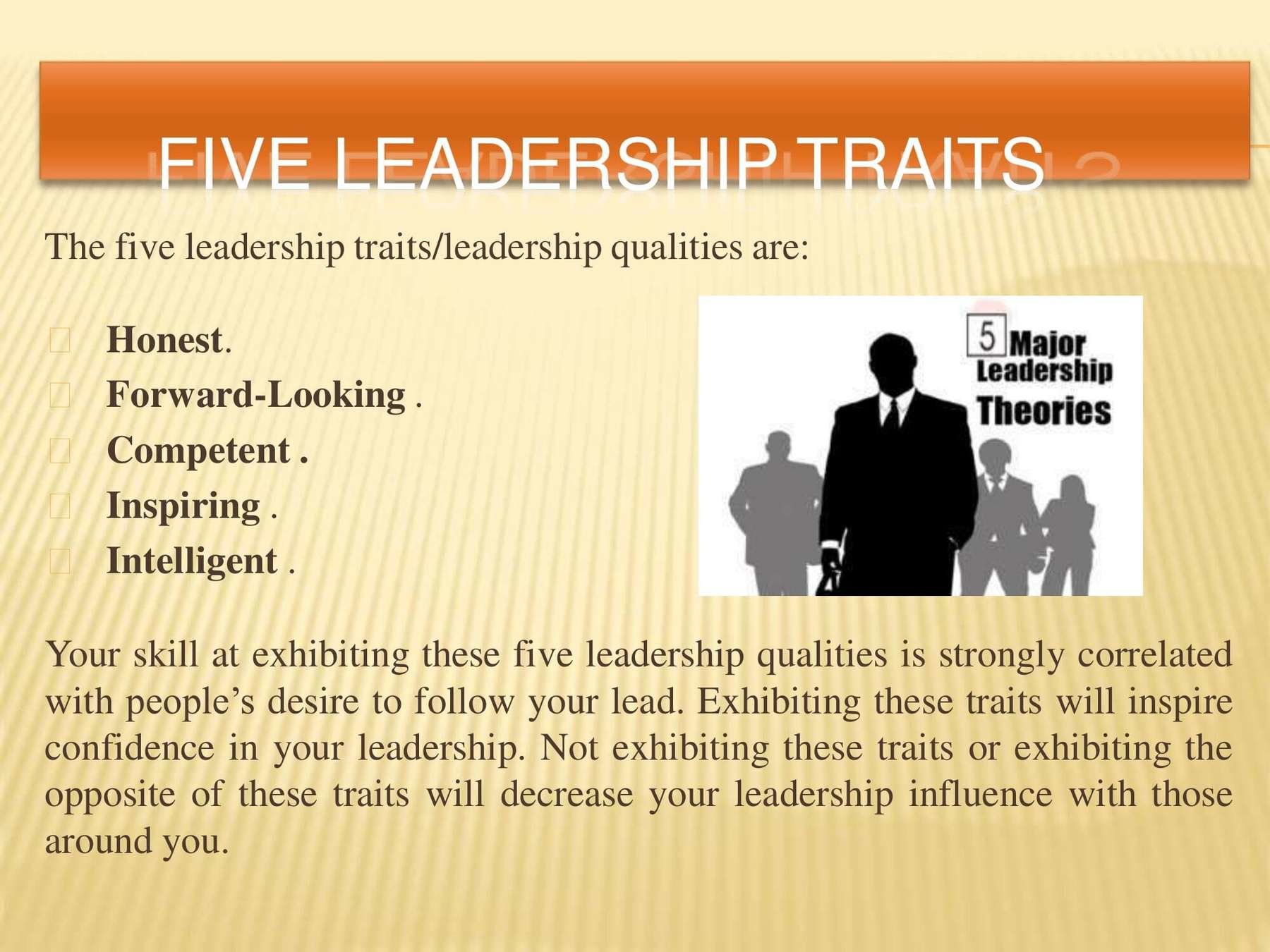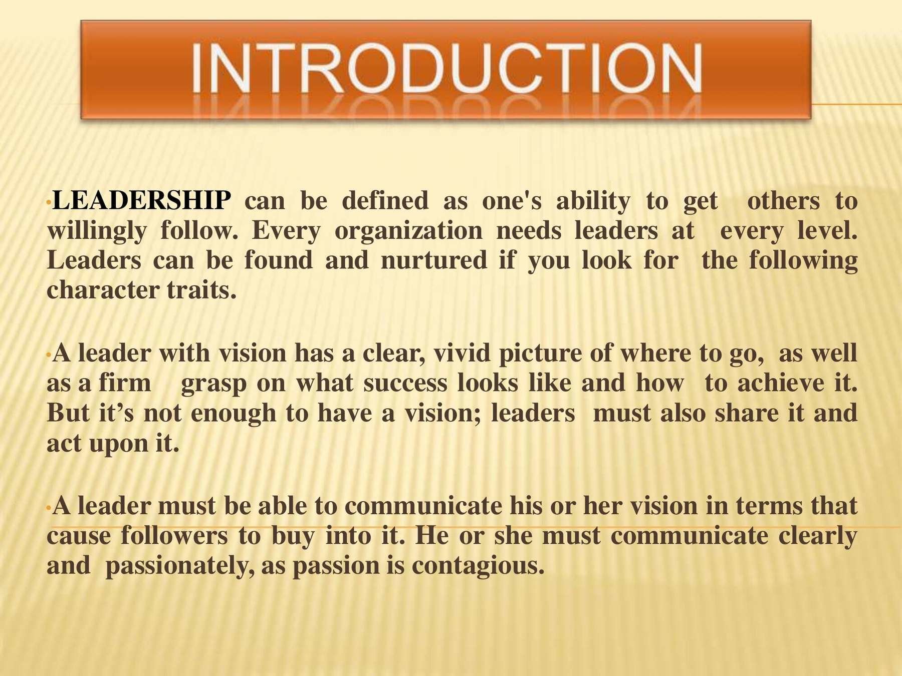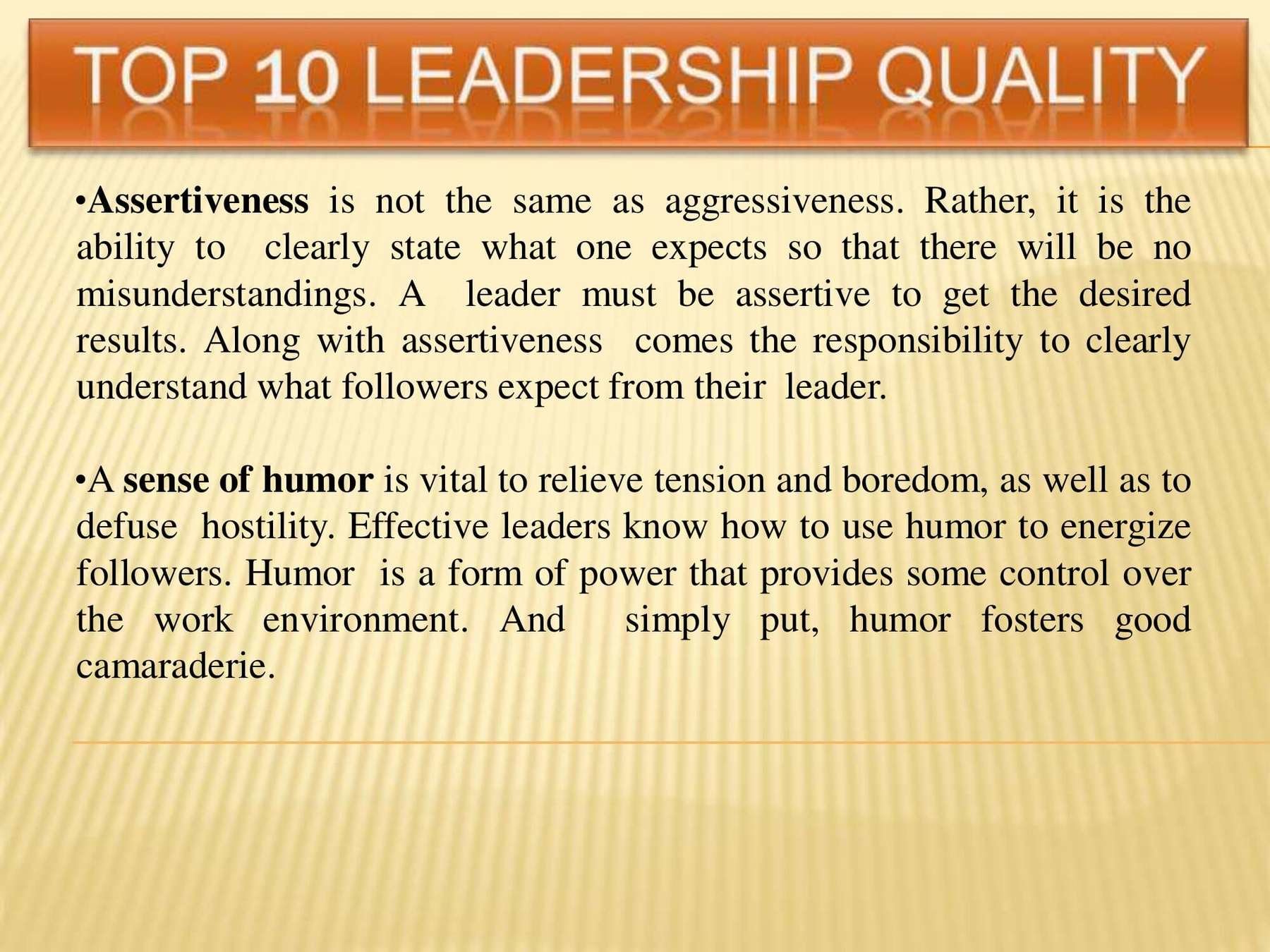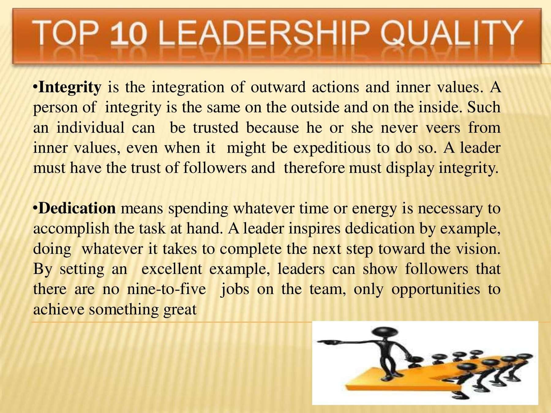 Leadership qualities that define effective leadership are specific and can be learned. This presentation covers these qualities and how you can succeed.