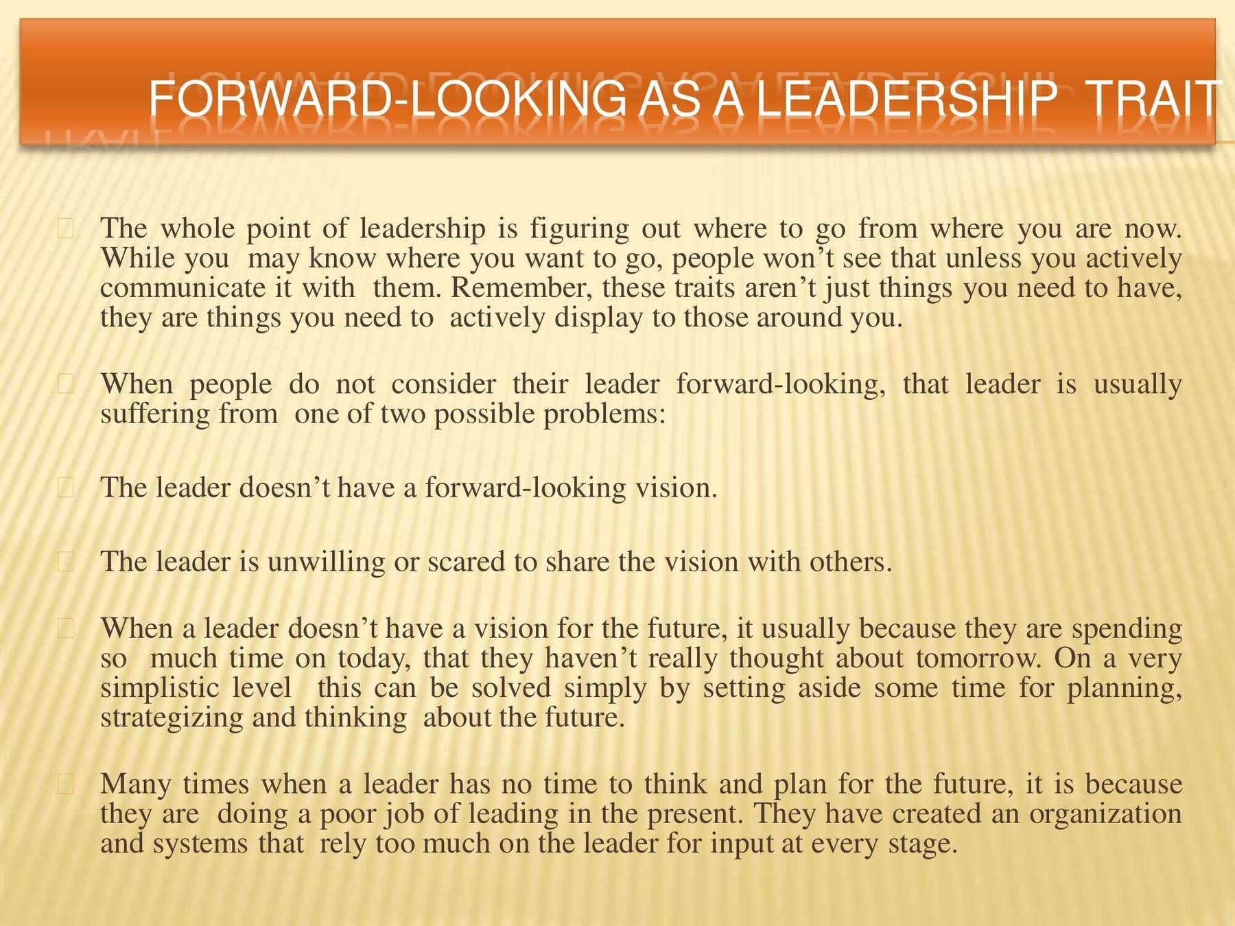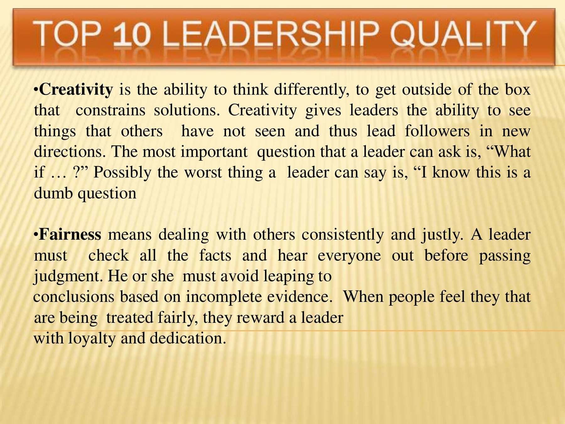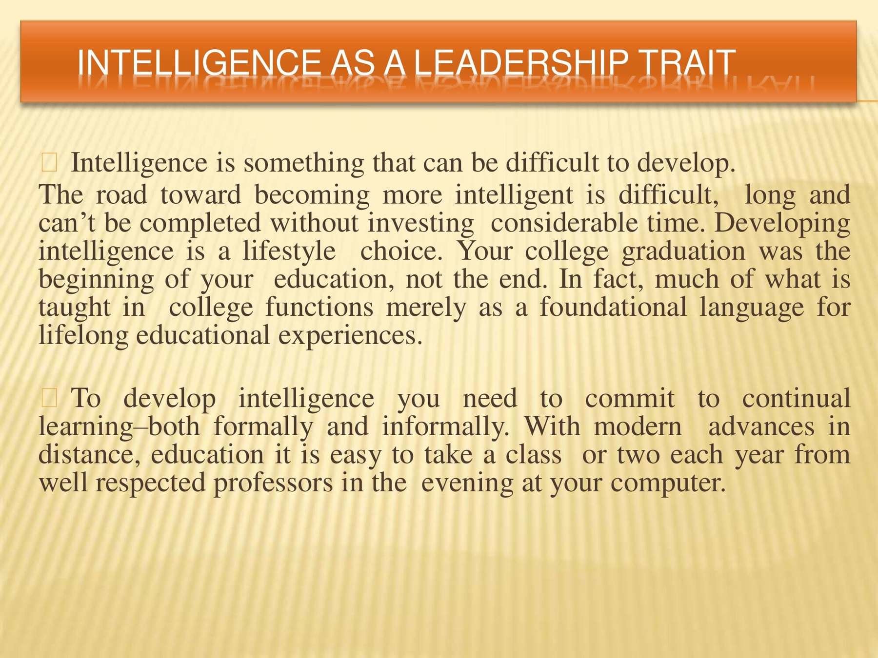 Leadership qualities that define effective leadership are specific and can be learned. This presentation covers these qualities and how you can succeed.