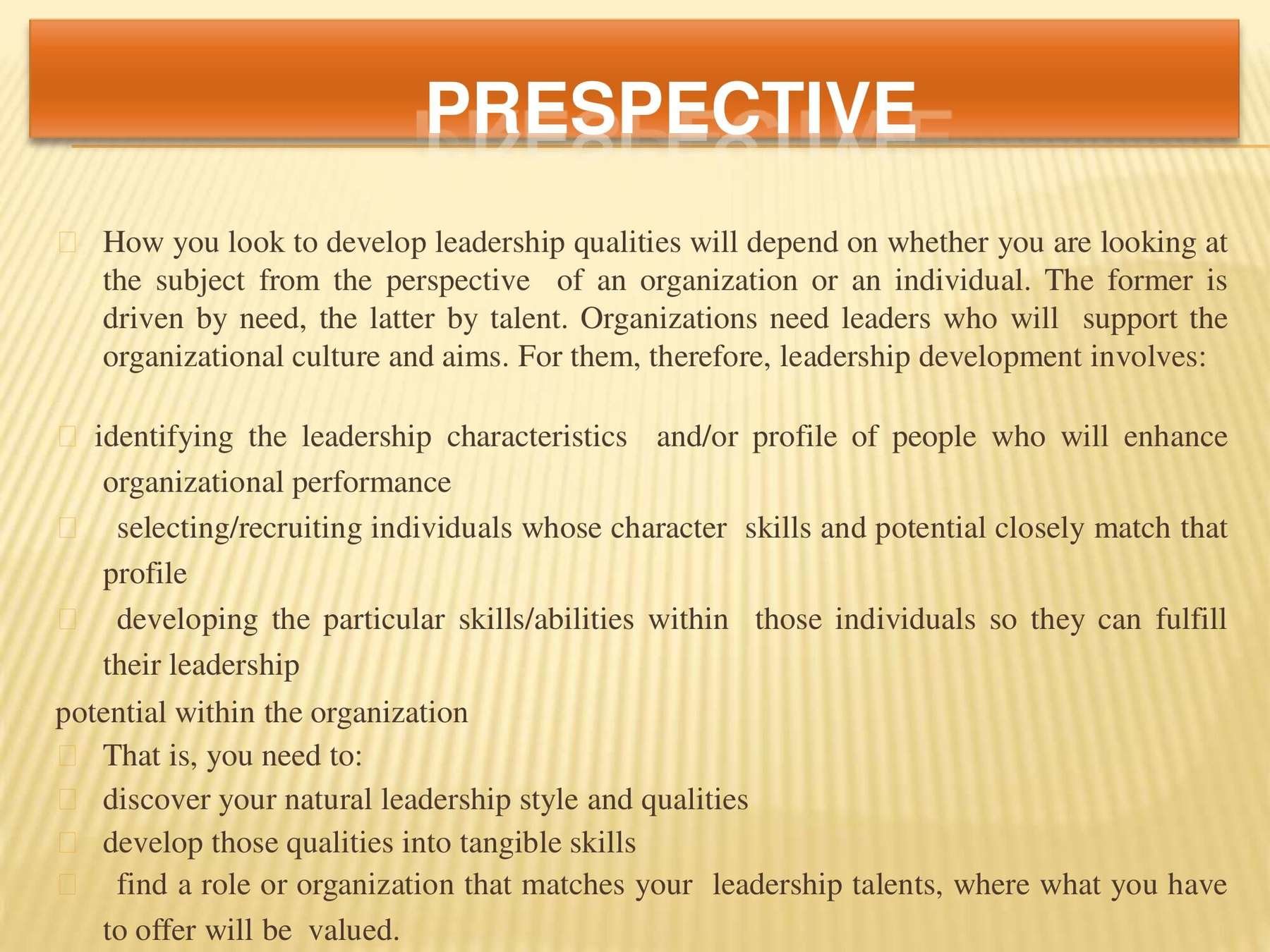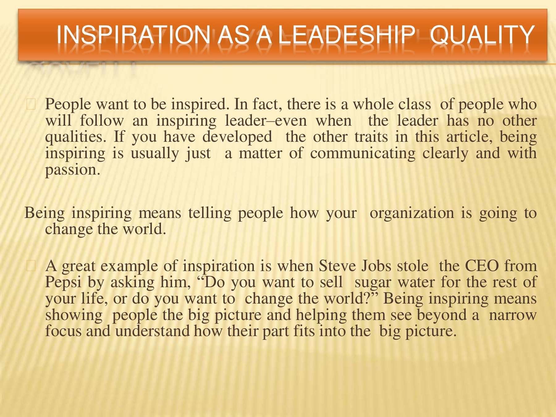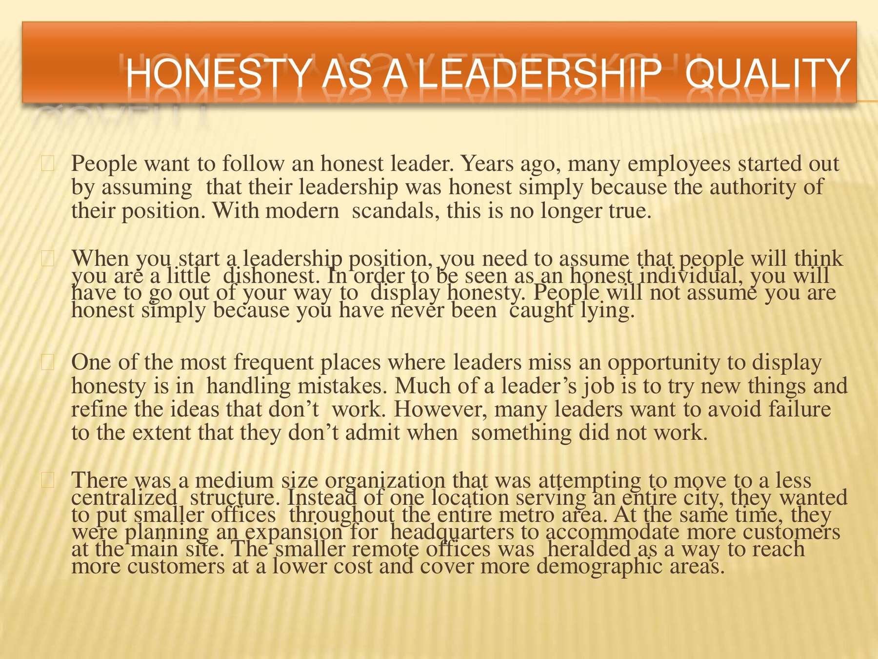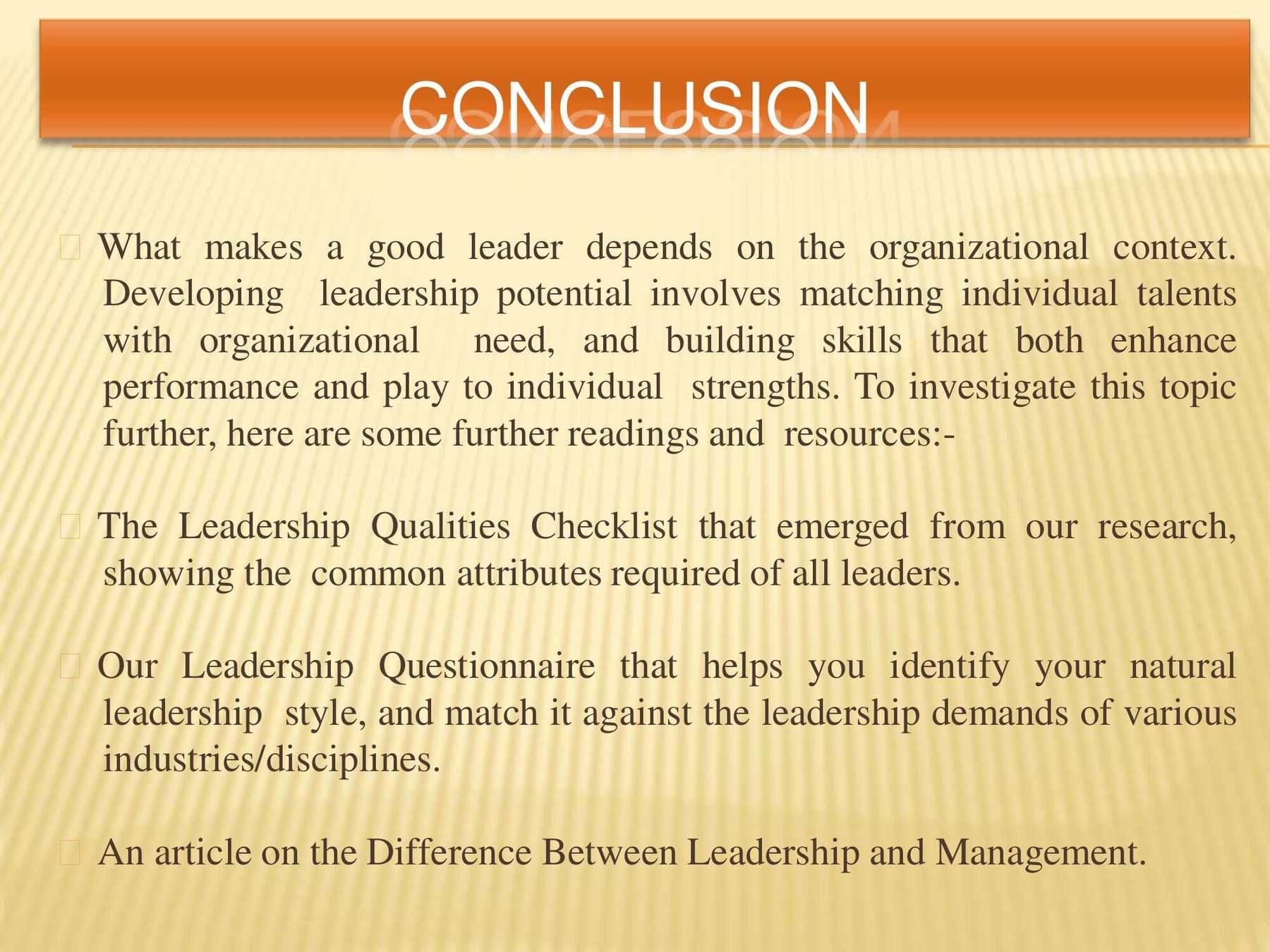 Leadership qualities that define effective leadership are specific and can be learned. This presentation covers these qualities and how you can succeed.