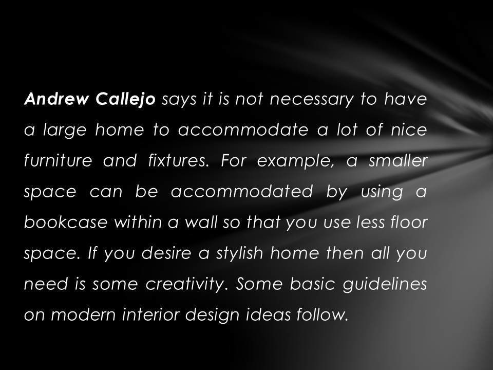 Andrew Callejo - Modern house design ideas interior. Interior designing is a creative way of decorating the living places including homes and offices.