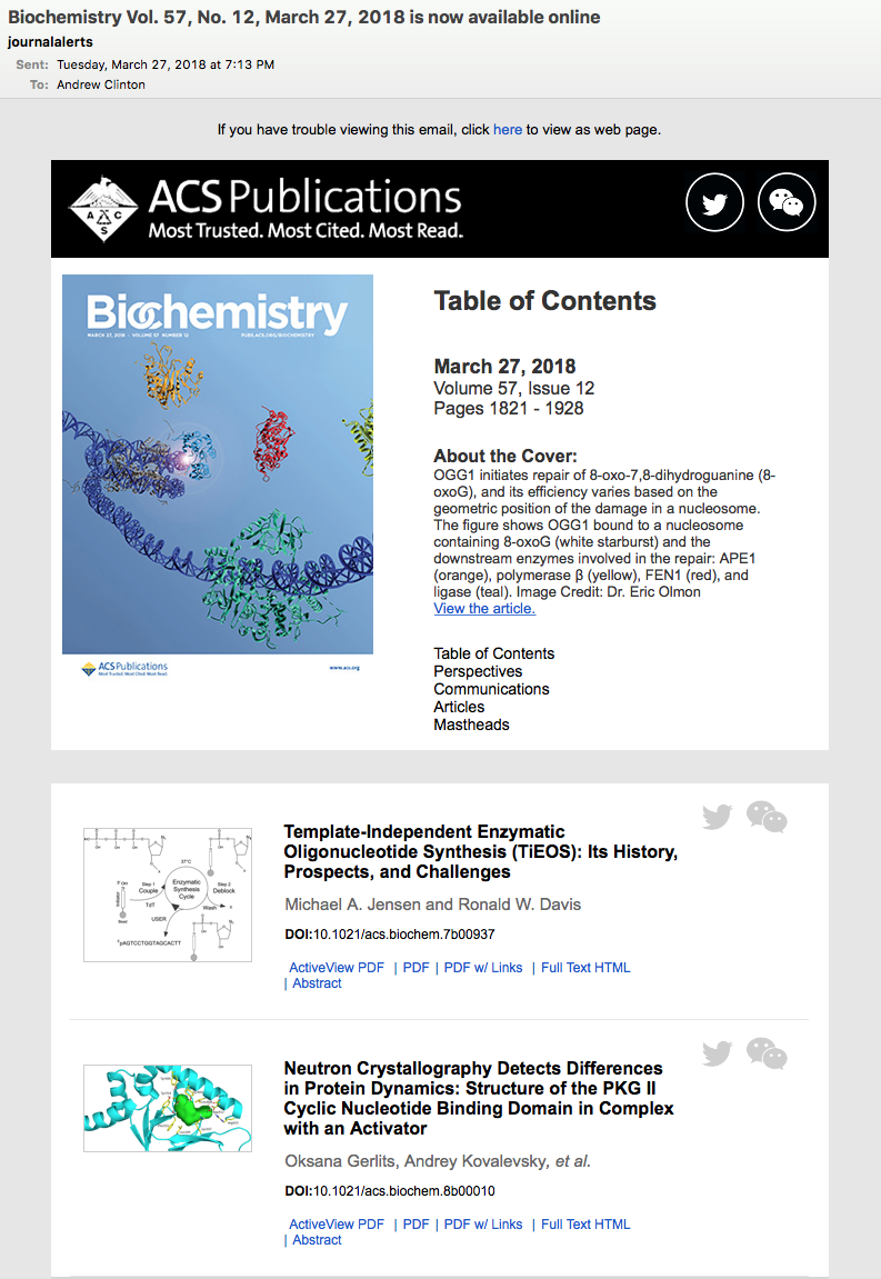 This applies to accessing titles on journal table of contents, search results, e-Alerts, and any article listing on the ACS Publications website.