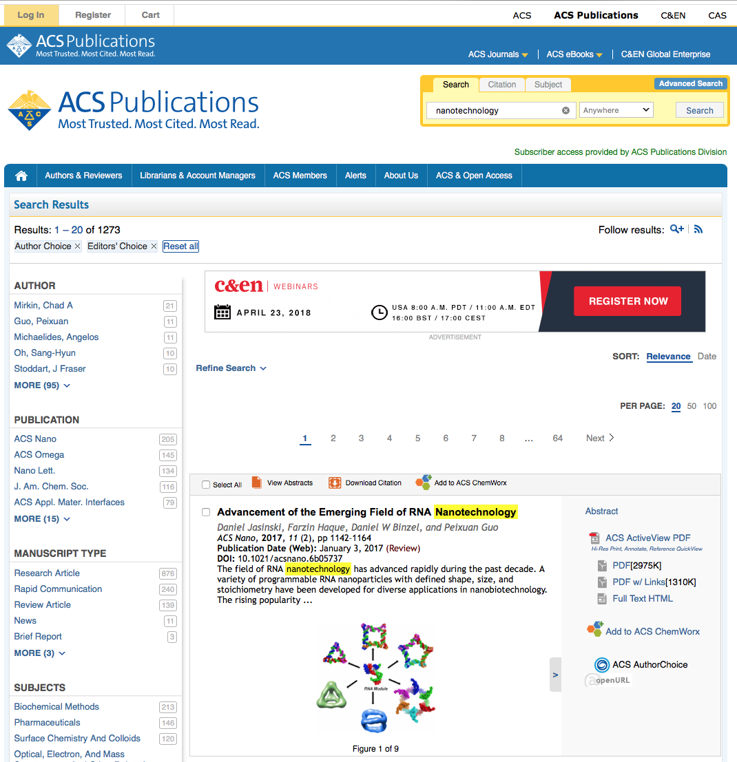 In order to optimize the experience for ACS researchers, we provide them with more direct access to research at an institution that has subscription access.