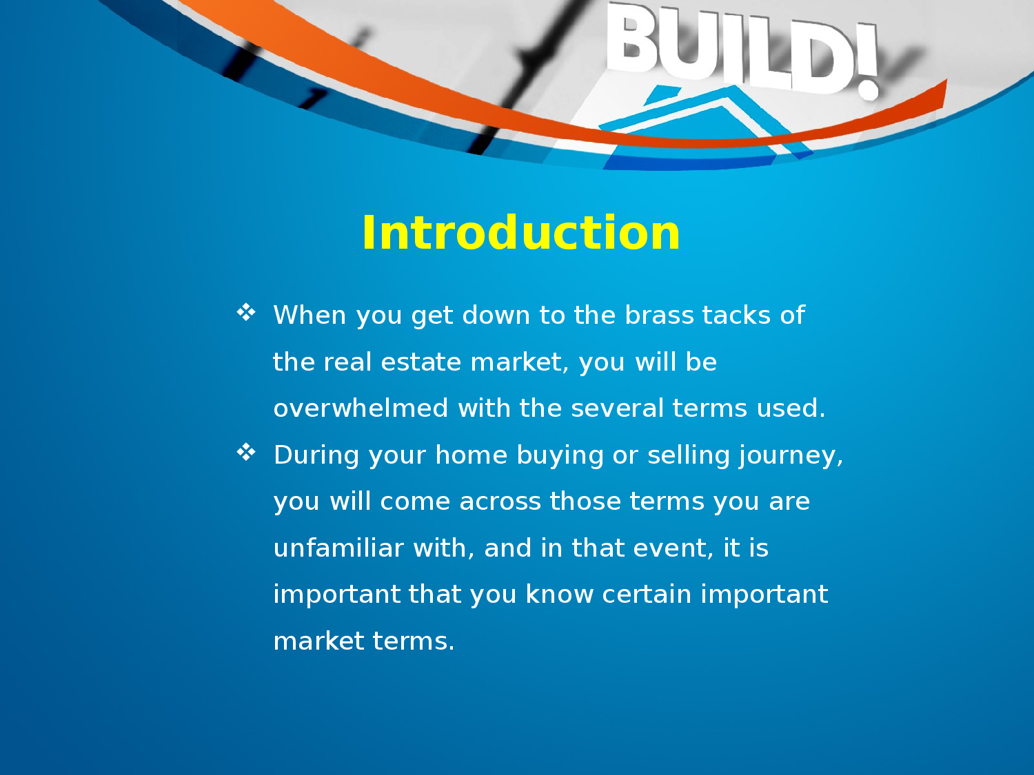 When you get down to the brass tacks of the real estate market, you will be overwhelmed with the several terms used.During your home buying or selling journey, you will come across those terms you are unfamiliar with, and in that event, it is important that you know certain important market terms.