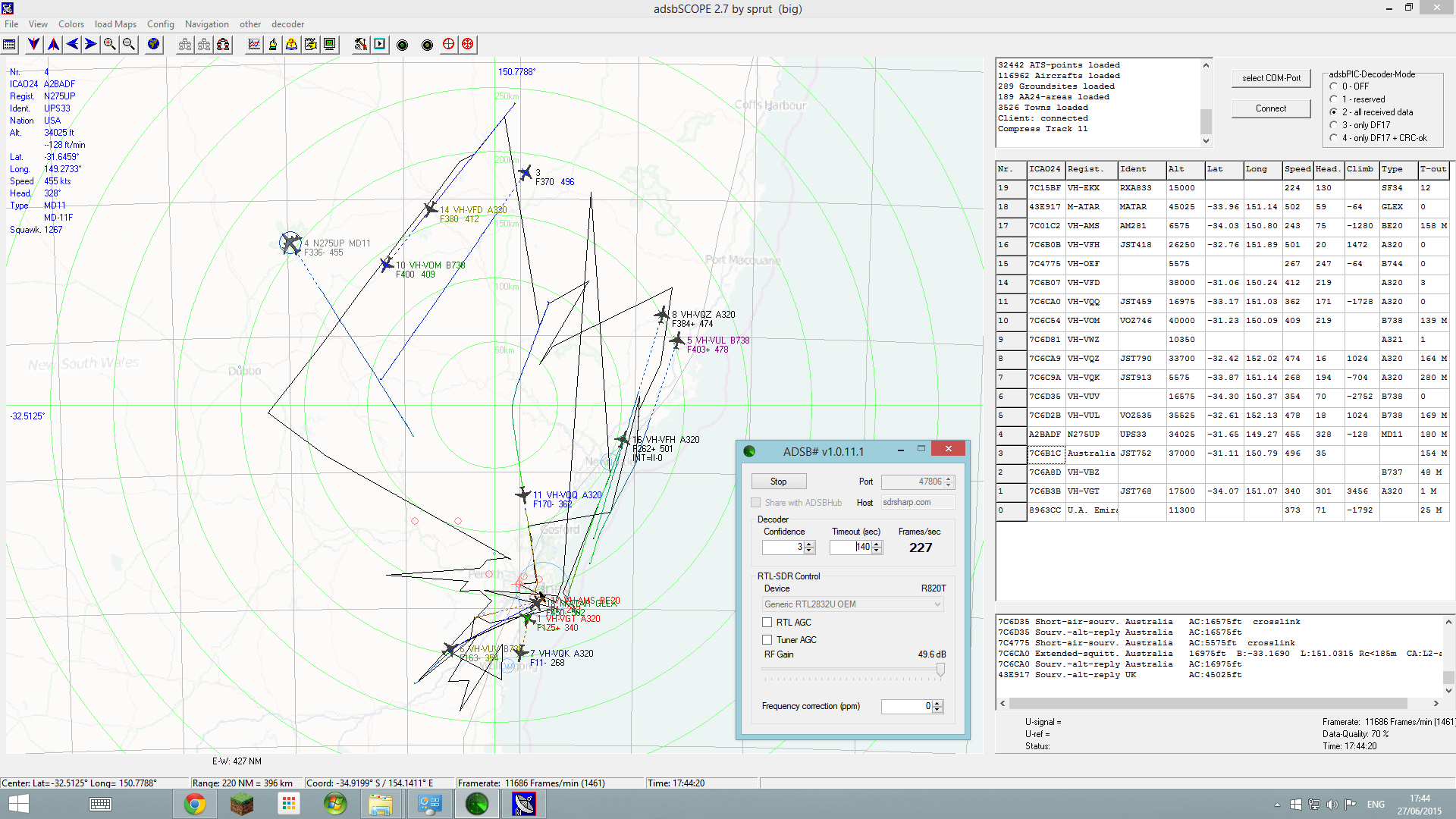 Unforeseen outcome #1: recieving flight telemetry data direct from planes via a simple antennae.
