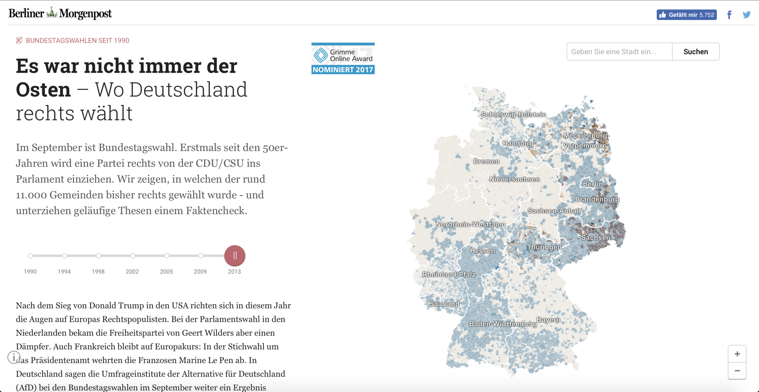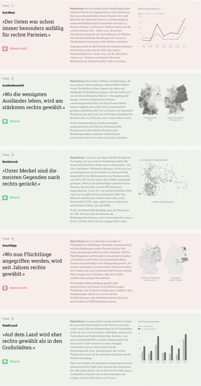 除了互動地圖,柏林早報也用選舉資料進行"Fact Check",查核輿論對於極右派的主流意見是否為真。