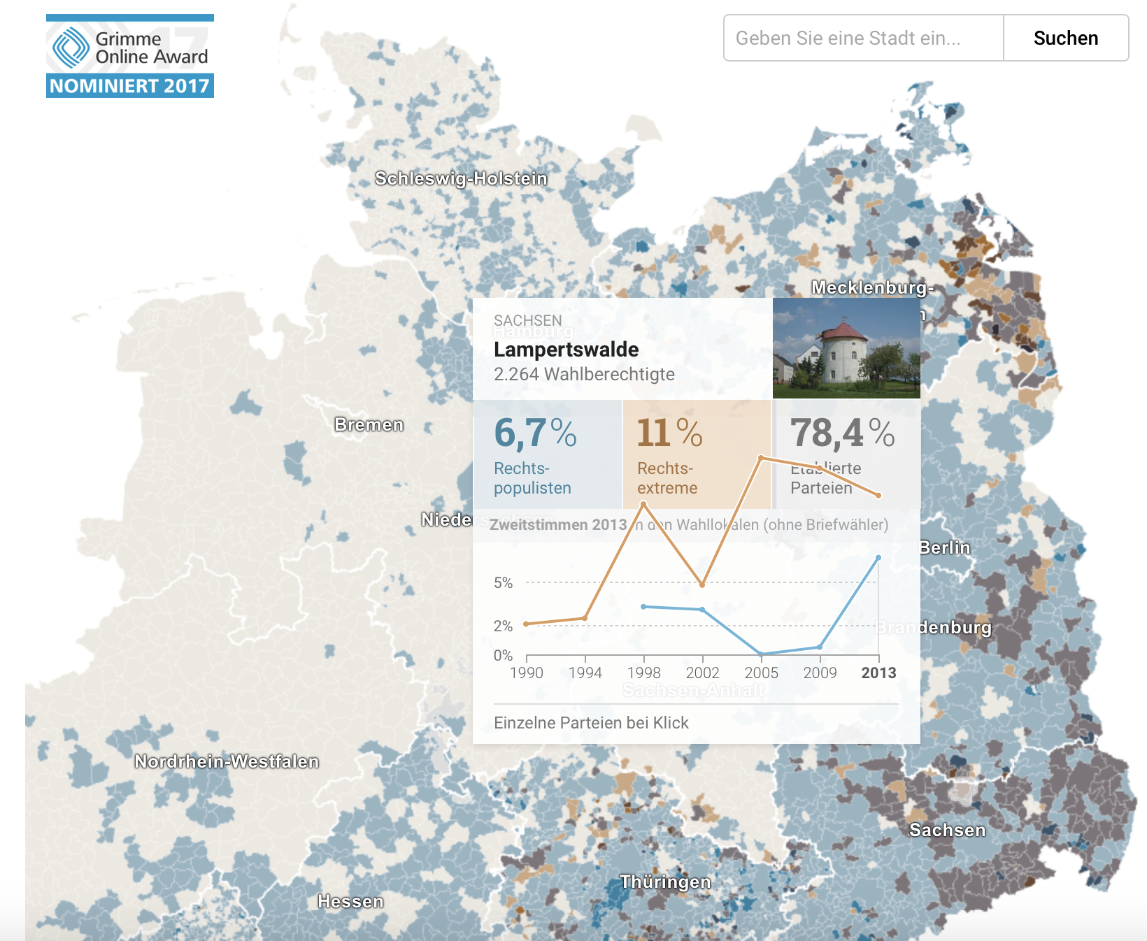柏林早報運用過去三十年的投票資料,分析右翼民粹主義跟極右派在東德如何崛起。