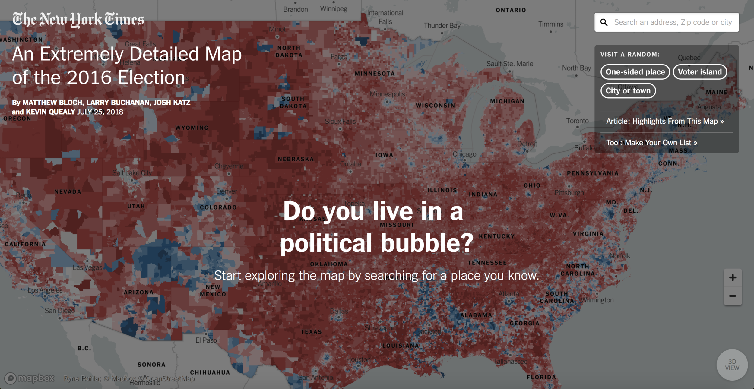 雖然各家媒體都會在選後幾天內推出選舉結果分析,但更複雜的分析,需要數週、數月,甚至數年製作。紐時在今年中推出的「史上最精細的美國大選地圖」,不僅有每個最小選區的投票率,還可以隨機找出壓倒性選區、孤島選區等有趣的資訊。