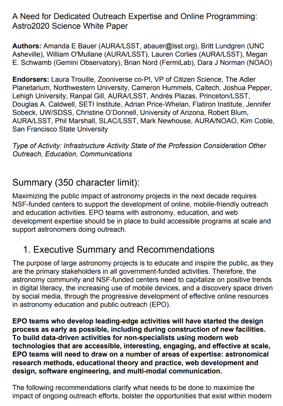 "...Therefore, the astronomy community and NSF-funded centers need to capitalize on positive trends in digital literacy, the increasing use of mobile devices, and a discovery space driven by social media, through the progressive development of effective online resources in astronomy education and public outreach (EPO)."