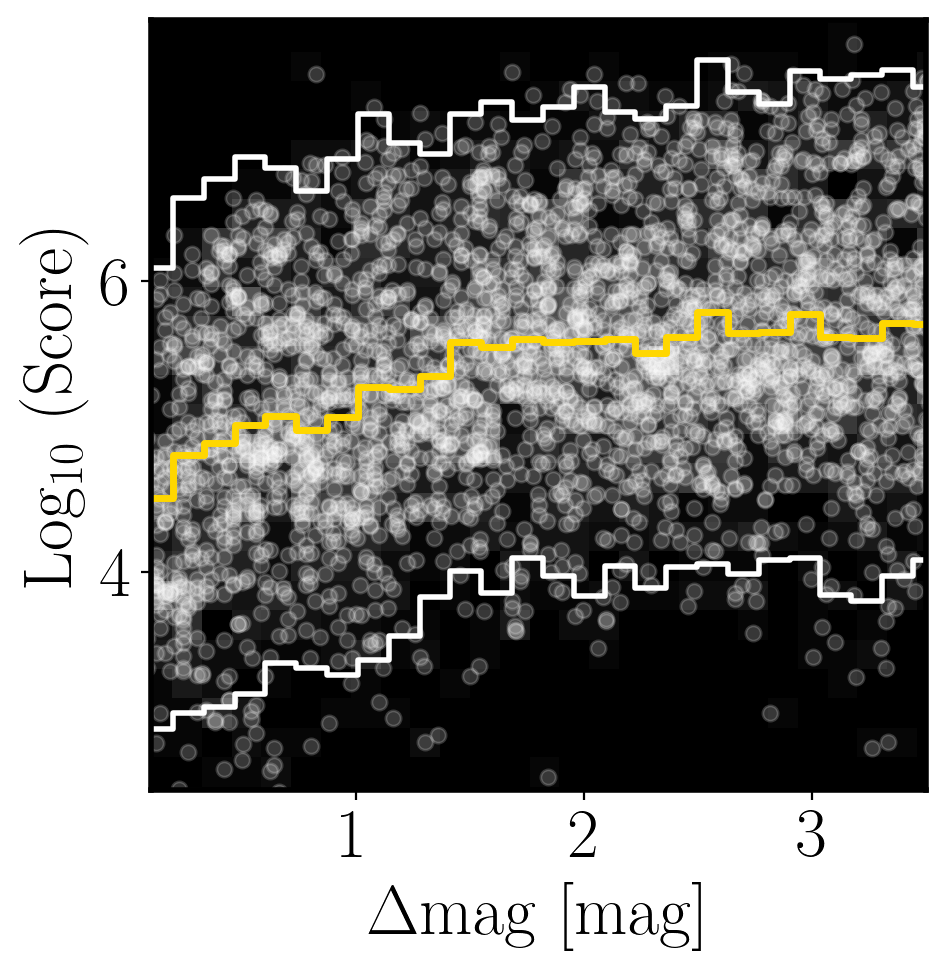 Using injection-recovery methods with LSDB & Nested, we're able to measure the score threshold of bonafide dippers