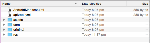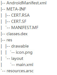 - AndroidManifest.xml contains details like name, version, referenced library files and more.