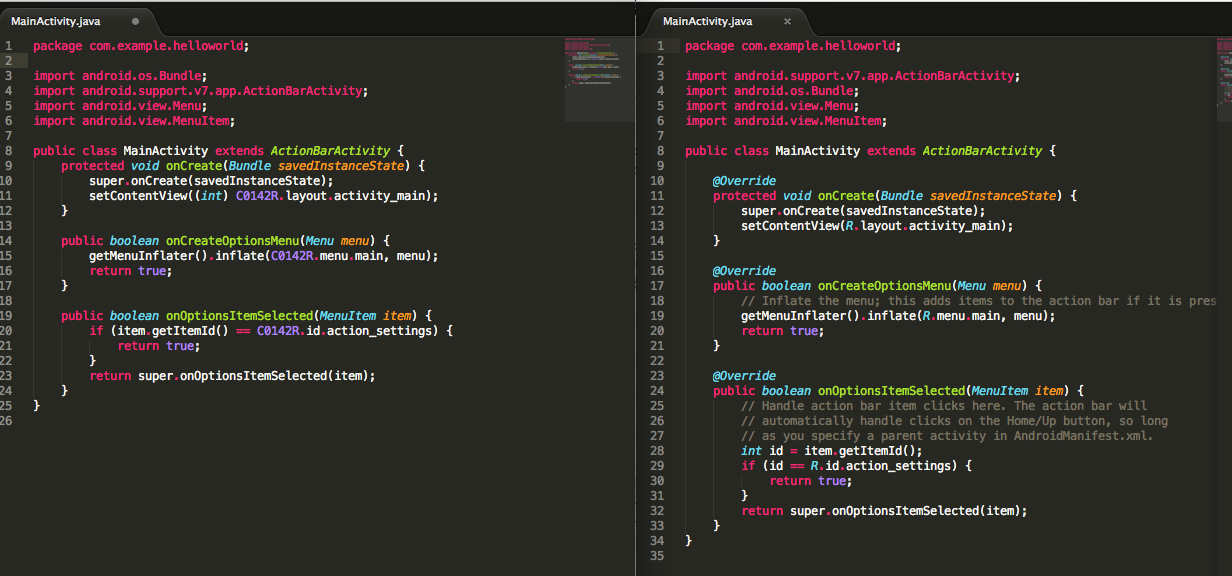 Its the same exact code. That was an example to show why decompiling a Java APK is so easy!