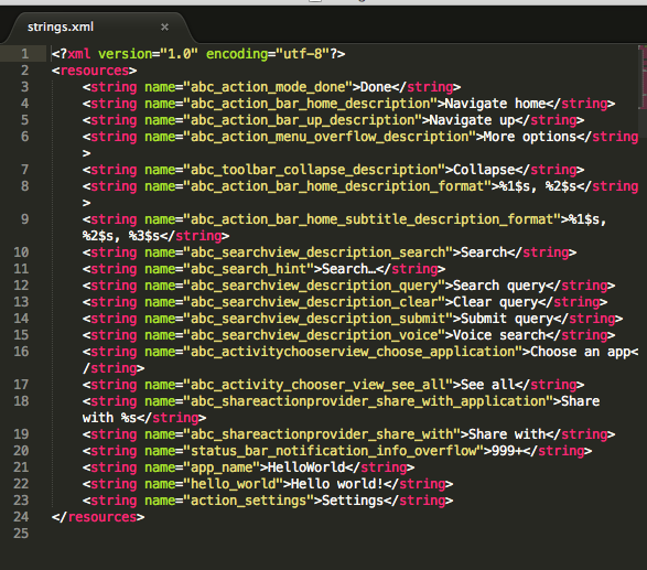 The android:text field is not a string anymore. Its changed to a hex, 0x7fa0013 instead of @string/hello_world.