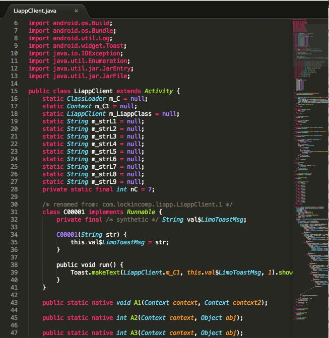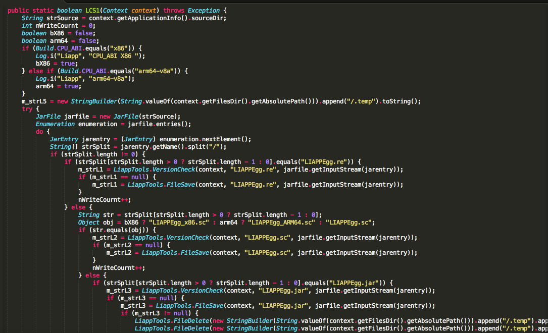 But wait there is more than just JAVA code now! :O LIAPP has a custom application context that it writes to an ELF file in assets.