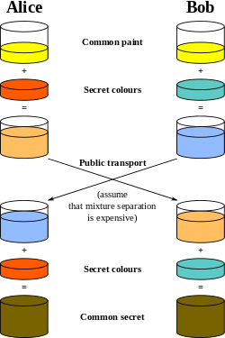 Alice and Bob agree to use a modulus p = 23 and base g = 5 (which is a primitive root modulo 23).