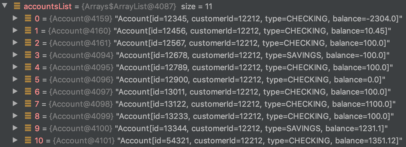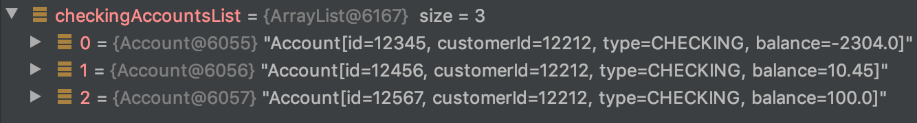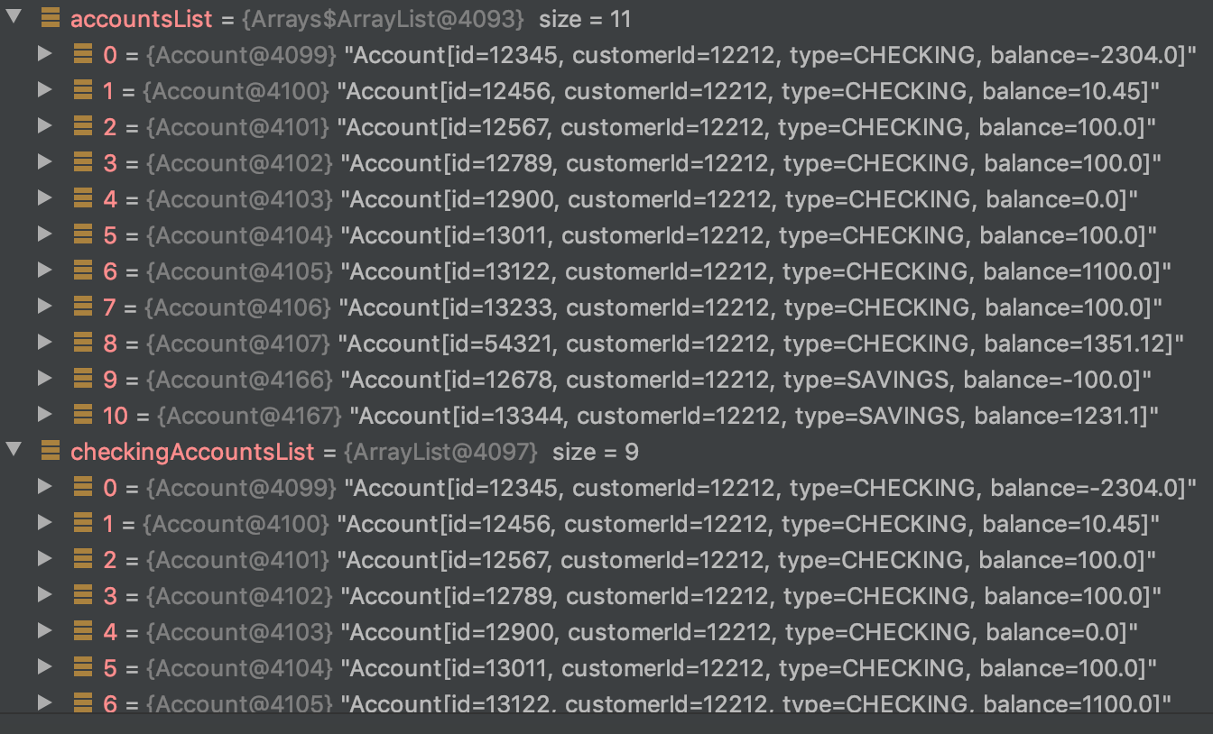 assertEquals(expectedAccounts, actualAccounts);