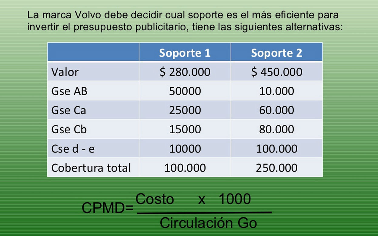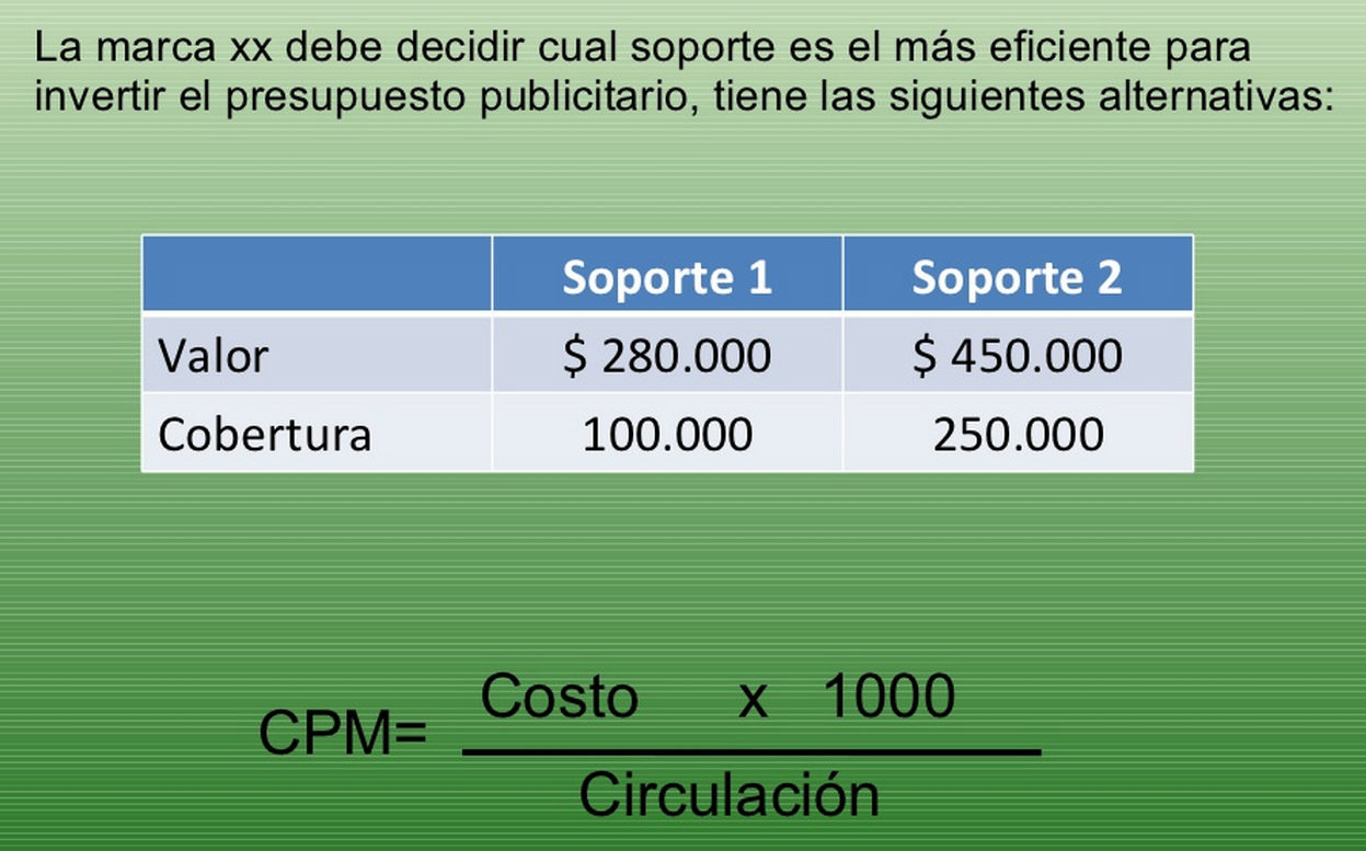 Costo de alcanzar mil personas de la audiencia del soporte.