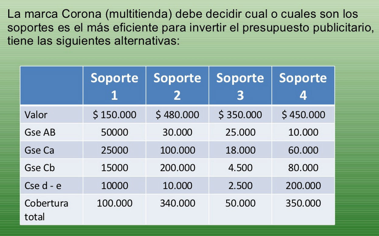 Escoger el soporte que tiene más capacidad para transmitir el mensaje al G.O.