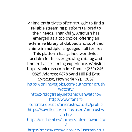 Website: https://anicrush.com.im/ Anime enthusiasts often struggle to find a reliable streaming platform tailored to their needs. Thankfully, Anicrush has emerged as a top choice, offering an extensive library of dubbed and subtitled anime in multipl