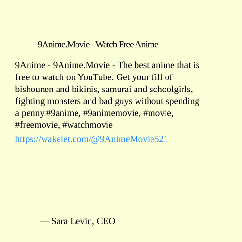 "9Anime Movie is the most popular streaming website for watching anime series and movies on the Internet. Watch Anime online with DUB and SUB for FREE on 9Anime.Movie. #9anime, #freeanime, #watchanime, #9animemovie https://9anime.movie/"