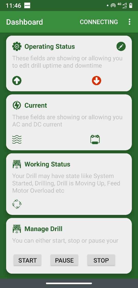 - For monitoring and controlling Diamond core drill machine, a android app was designed and developed