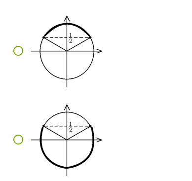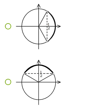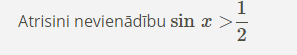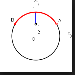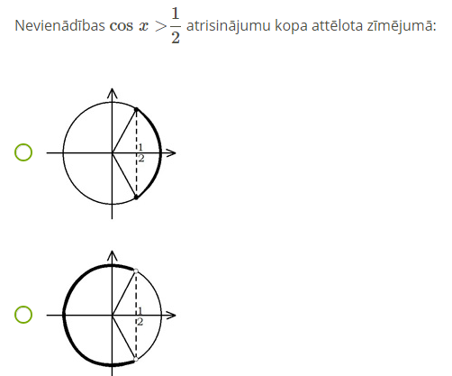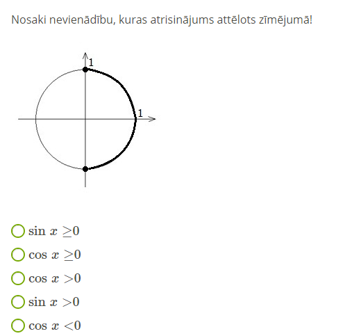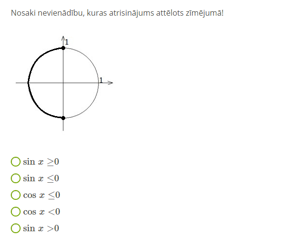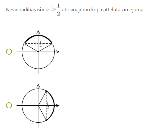 3.ņemot vērā nevienādības zīmi, iekrāso atbilstošo loka daļu;