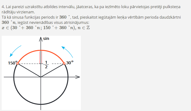 4.nosaka pagrieziena leņķa vērtības (bieži vien tās vajag atrisināt no atbilstošā vienādojuma un tad atlikt riņķī);