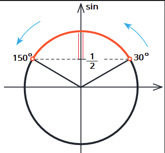 1. uzzīmē vienības riņķi, atrod dotās funkcijas asi;