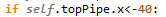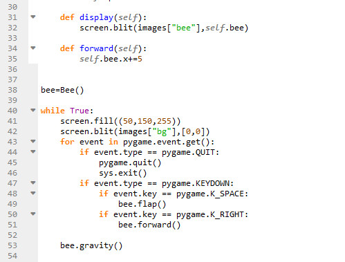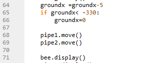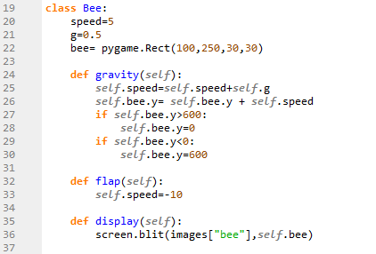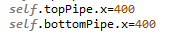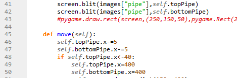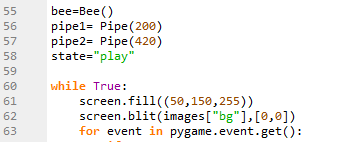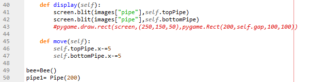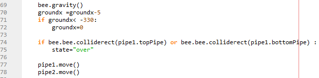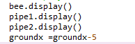 bee.bee.colliderect(pipe2.topPipe) or bee.bee.colliderect(pipe2.bottomPipe)bee.gravity()
