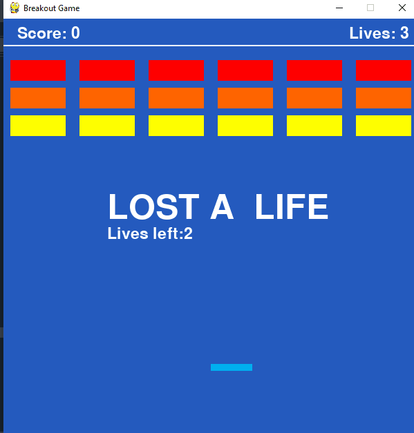 | TA1 | 11-17 | Ball bypassing the paddle and hitting the wall. Player life is decremented | 7 min |