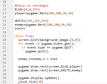 enemy=pygame.Rect(100,100,30,30)