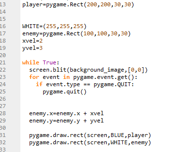 | 23-25 | Basic pygame code |
