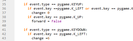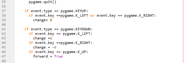 Checking if the up arrow key is pressed and then making forward =True, to indicate that the player should move forwards.