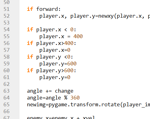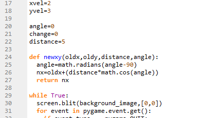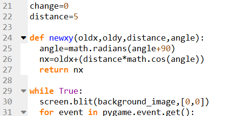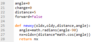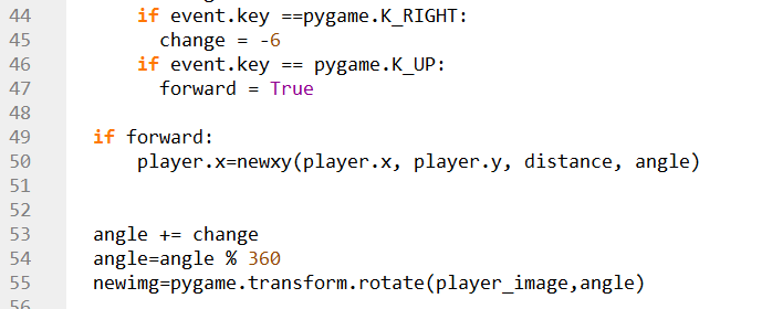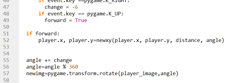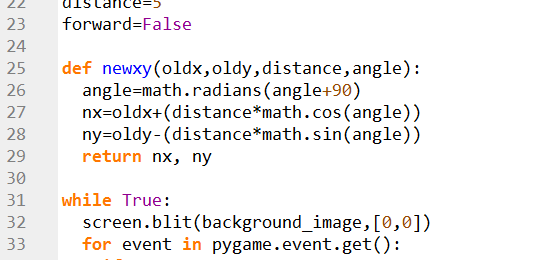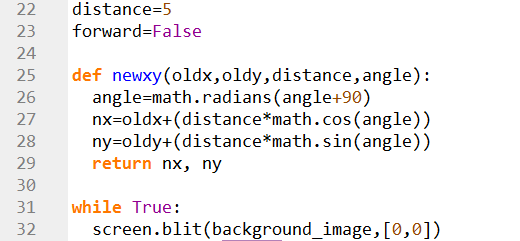 Checking if forward =True, and then calling the newxy() function to get new value for the player.x