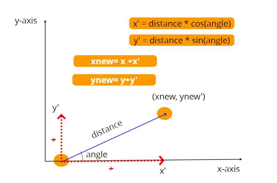 newx =oldx+(distance*cos(angle))