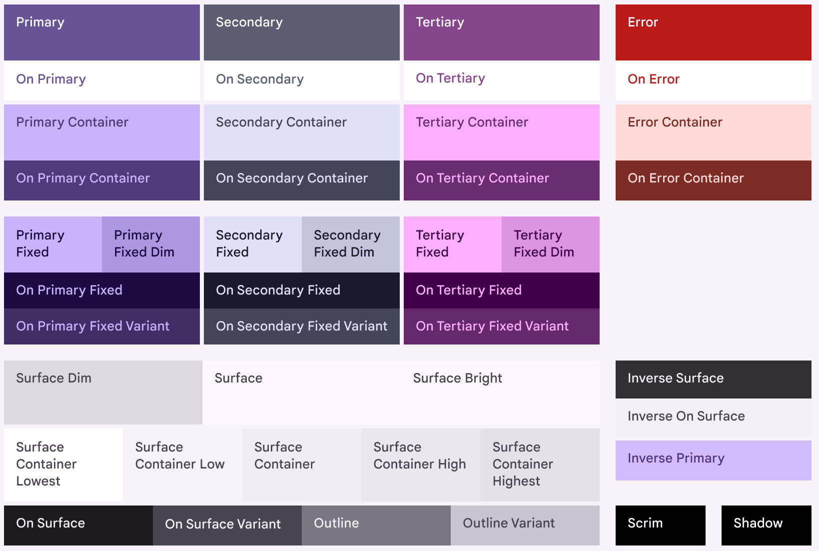 Diagram of all Material 3 color roles