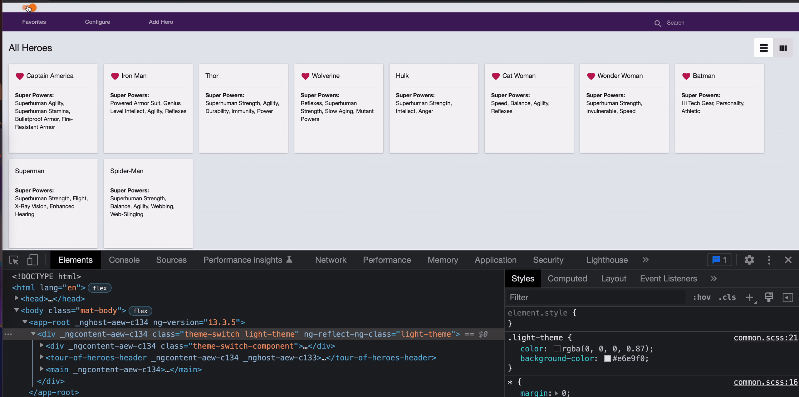<section [class]="group.value" class="dashboard-content"> <tour-of-heroes-card *ngFor="let hero of heroes$ | async" [hero]="hero"></tour-of-heroes-card> </section>