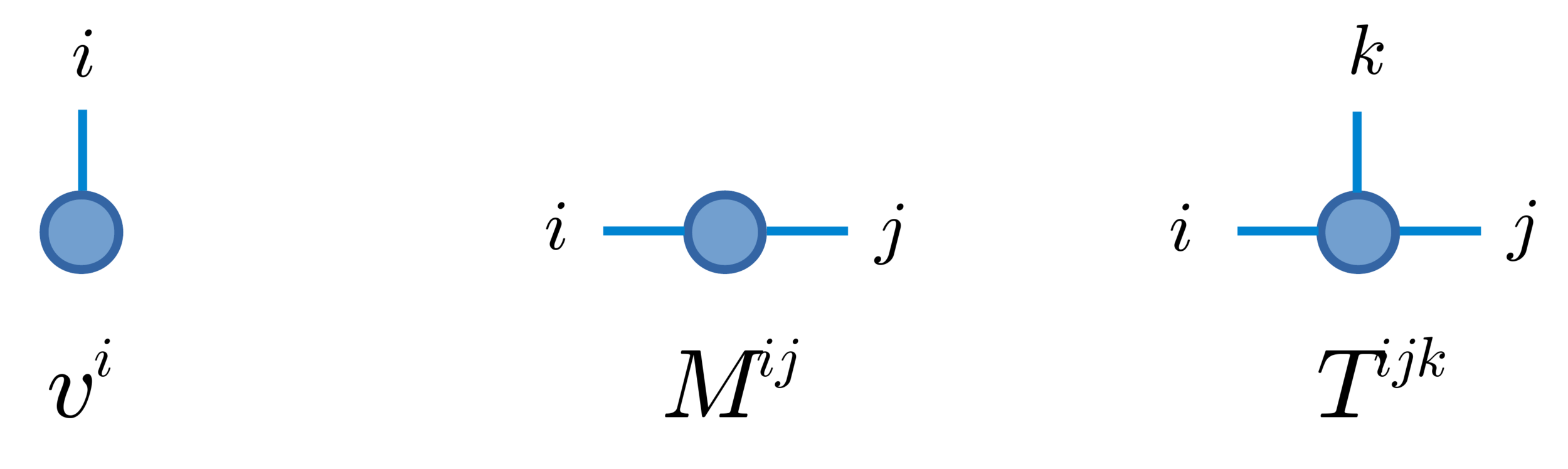 Graphical Representation of a vector, matrix and a rack-3 tensor
