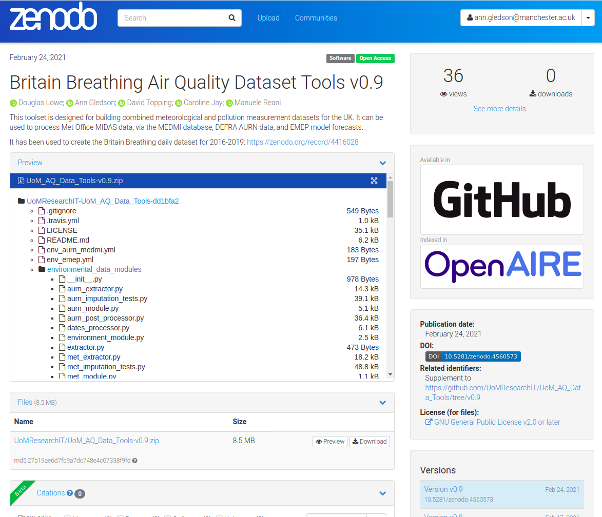 - DOI: Link Github repo release with Zenodo