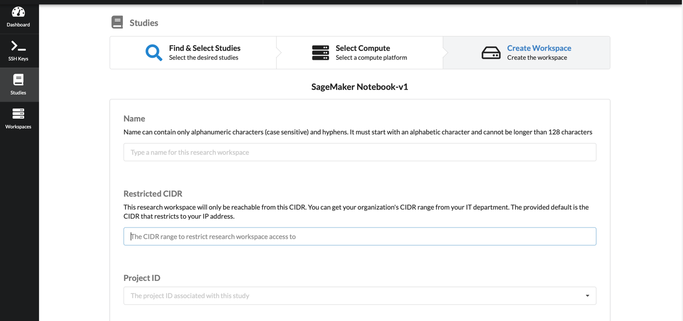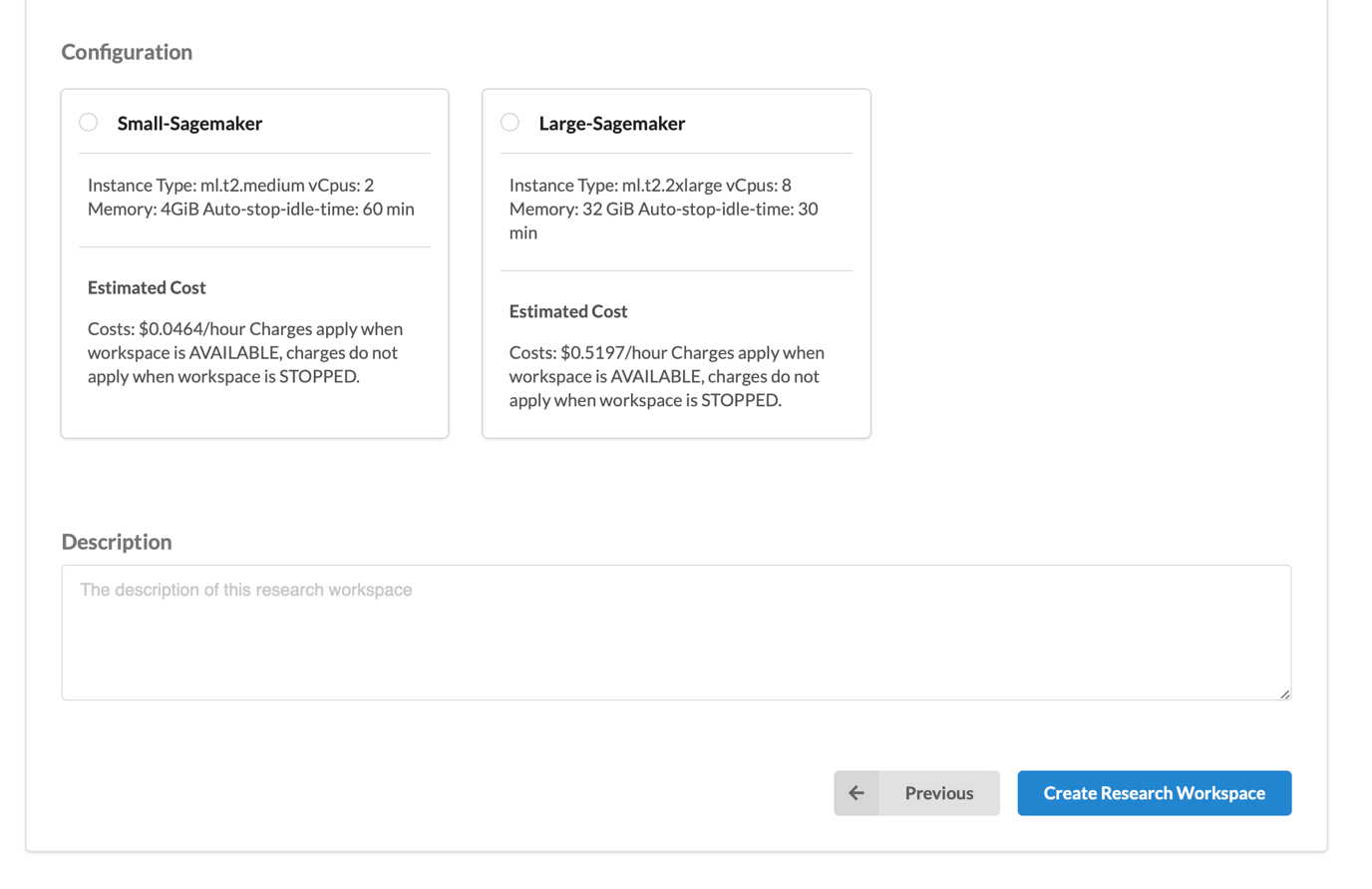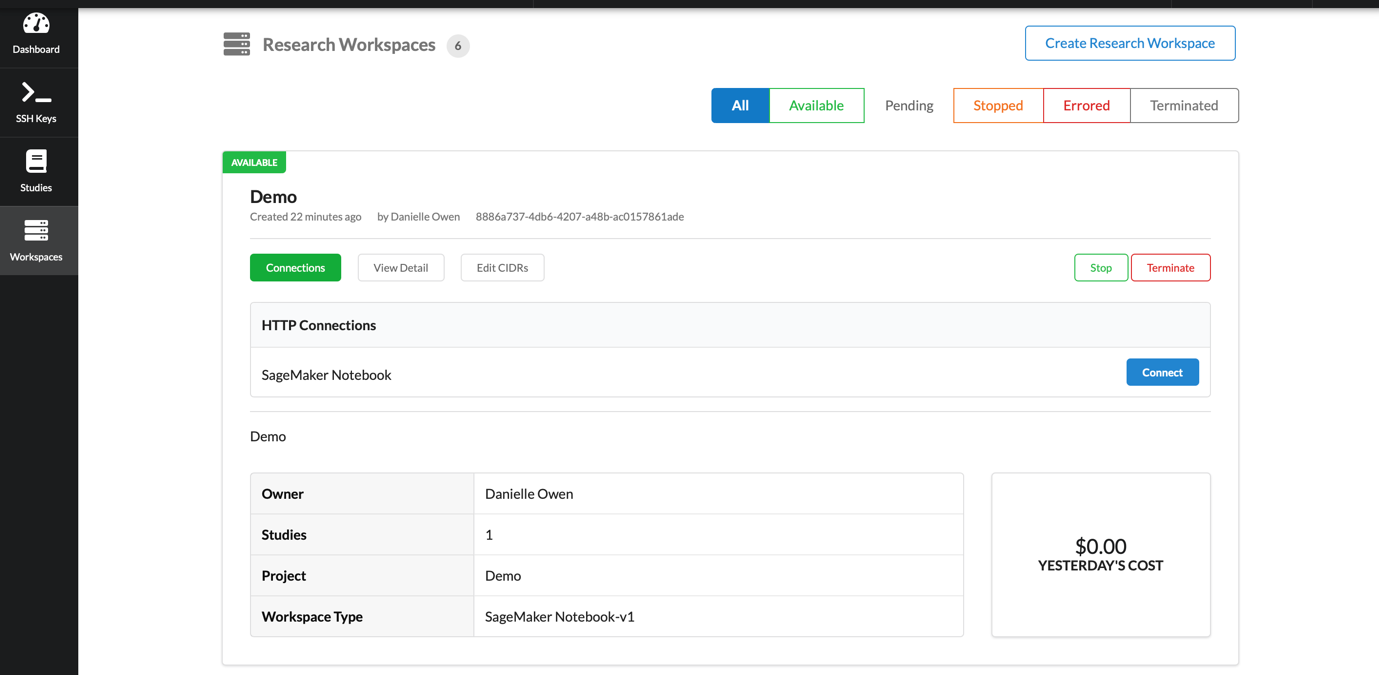 - Stopped: workbench still exists, with data saved. To use you need to re-start