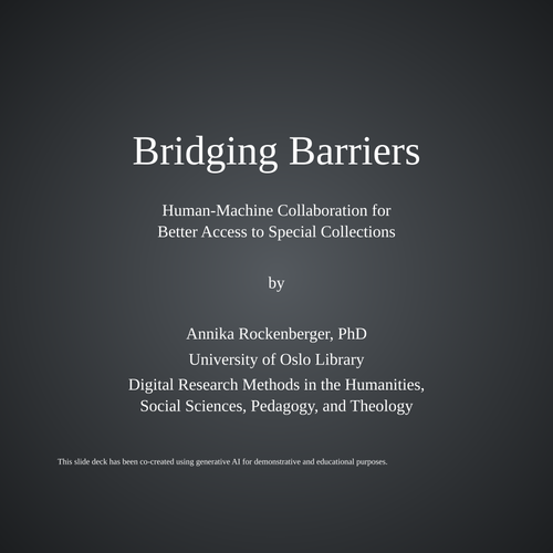 Bridging Barriers. Human-Machine Collaboration for Better Access to Special Collections. Talk at MF. Oslo. 2025-12-16