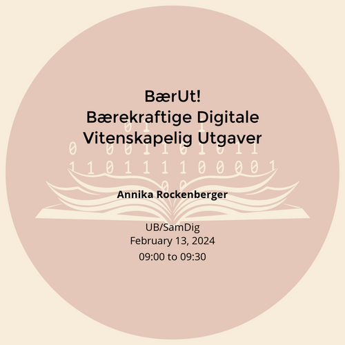 Presentation of BærUt! Sustainable digital scientific editions. Skills hub and network at the University of Oslo, 2024-2026. Content authored by Annika Rockenberger & Johanne Emilie Christensen. Design: Sofie Gilbert. CC-BY 4.0