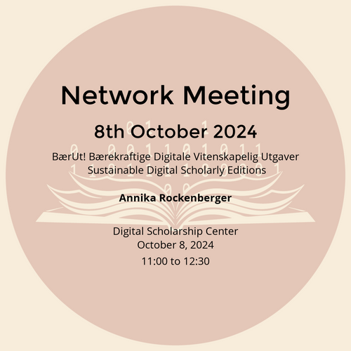 Presentation of BærUt! Sustainable digital scholarly editions. Network meeting information - October 2024. Design: Sofie Gilbert. Content: Annika Rockenberger. CC-BY 4.0