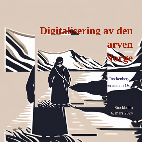 Presentasjon ved symposiet "Digitalisering av det litterära kulturarvet: Varför, vad, hur?" Kunglige Vitterhetsakademien i Stockholm. 6.-7. mars 2024. Ved Annika Rockenberger. CC BY 4.0. Alle bilder er KI-genererte.
