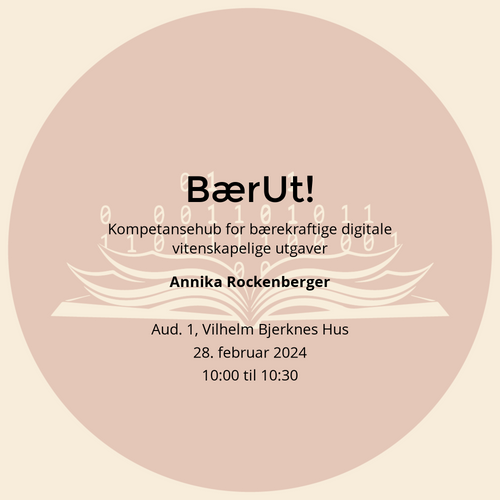 Presentation of BærUt! Sustainable digital scientific editions. Skills hub and network at the University of Oslo, 2024-2026. Content authored by Annika Rockenberger & Johanne Emilie Christensen. Design: Sofie Gilbert. CC-BY 4.0. In Norwegian