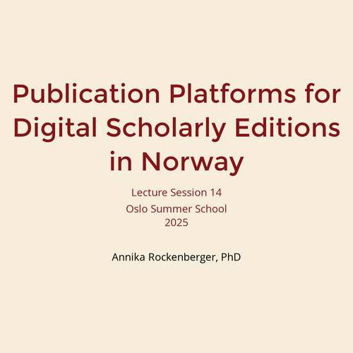 Slides for the Lecture Session "Publication Platforms" of the Oslo Summer School on Digital Scholarly Editions. Oslo, 2025-09-22 to 2025-09-26. Design: Sofie Gilbert. Content: Annika Rockenberger. CC-BY 4.0