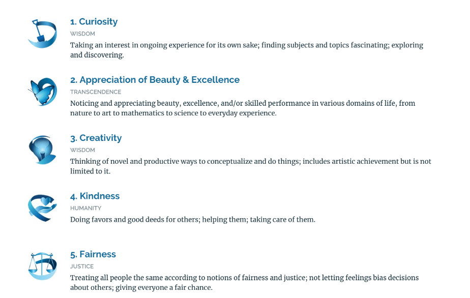 Fairness as the fifth result stood out to me because I will be kind and understanding to a certain degree, but not forgiving. If a person is being hateful and discriminatory I will never forgive them and that is the end of that. Otherwise, things are peaches and cream. I don’t understand why it deems me fair, as I can be biased and I also made it very aware that I will lie about certain things, of which there are plenty. Another reason I don’t agree with “fairness” being my fifth strength is that if I grade or review something, even my own work, I tend to be very- nay, extremely critical of the work. I have even written insults to myself before when I self graded an essay. If I remember correctly, I wrote something along the lines of “are you a high schooler? Or fifth grader? Your writing sure screams fifth to me.”