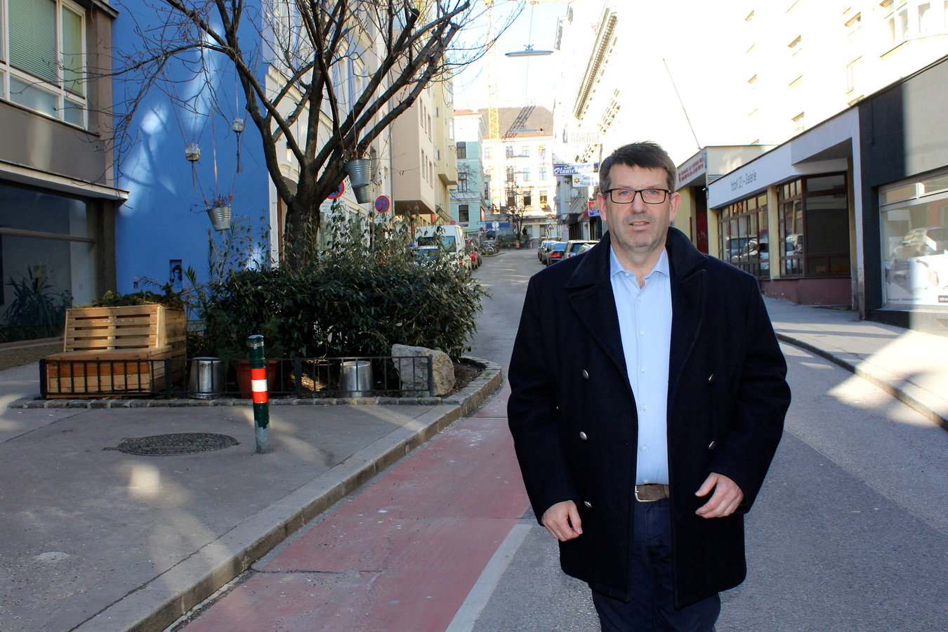 Kreativität und weniger Verkehr wollen die NEOS: Andreas Leszkovskys Team sieht den Schwendermarkt künftig als Künstlertreff. Außerdem soll das Grätzel zur verkehrsberuhigten Zone zwischen Sparkassaplatz und Mariahilfer Straße werden.