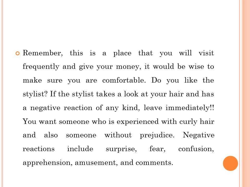 Thankfully, there are many more resources for us concerning curly hair and more salons catering to curly hair needs. If you decide to trust your precious locks in the hands of a professional stylist, there are some measures you need to take.