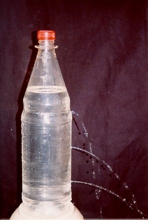 De vloeistof onderaan in een fles wordt meer naar beneden geduwd dan de vloeistof bovenaan de fles